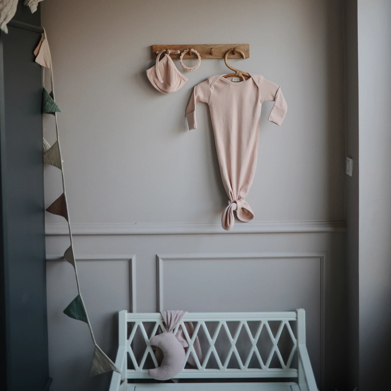 S'agence parfaitement avec les bonnets à noeud Mushie pour d'adorables photos de nouveau-né.